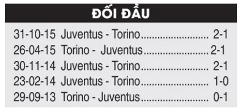 Torino cũng đang có phong độ tuyệt vời kể từ sau trận thua Inter hồi đầu tháng 11, họ thắng 3 trận liên tiếp trước khi hòa AS Roma hôm 5-12. Cuối tuần qua, họ không thi đấu trên sân Sassuolo vì điều kiện thời tiết tệ hại. Trong khuôn khổ Cúp Italia, vòng trước Torino thắng Cesena 4-1 và giờ nuôi mộng hạ bệ nhà vô địch để rửa mối hận thua trận derby hồi đầu mùa, khi Juan Cuadrado ghi bàn thắng muộn, giúp Juve thắng 2-1 trên sân Juventus Stadium.