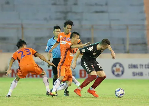 Đà Nẵng trở lại cuộc đua vô địch sau khi “đè bẹp” Long An trên sân nhà. Ảnh: Hải Nam