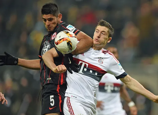 Bayern Munich (phải) quyết tâm không để cho Frankfurt giữ sạch mành lưới như ở trận lượt đi (0-0).