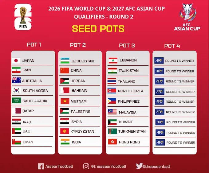 Đến nay đã xác 27 đội có tên ở vòng loại thứ hai, 9 đội còn lại sẽ được xác định ở vòng loại đầu tiên. Sau khi xác định đủ 36 đội, AFC sẽ tiến hành bốc thăm chia bảng vào ngày 27-7 tới đây để xác định 9 bảng đấu của vòng loại thứ hai World Cup 2026 khu vực châu Á.