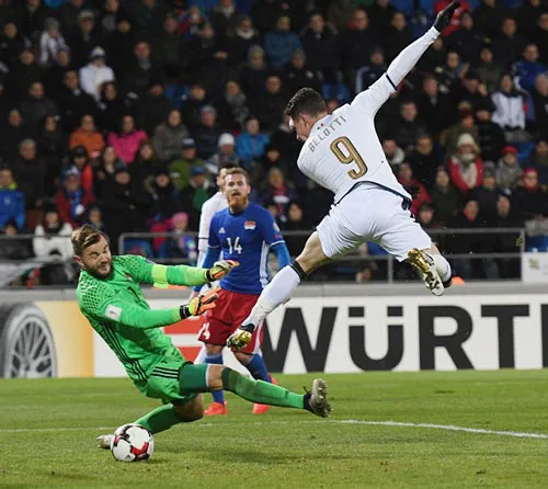 Andrea Belotti (số 9) trong pha ghi bàn vào lưới Liechtenstein
