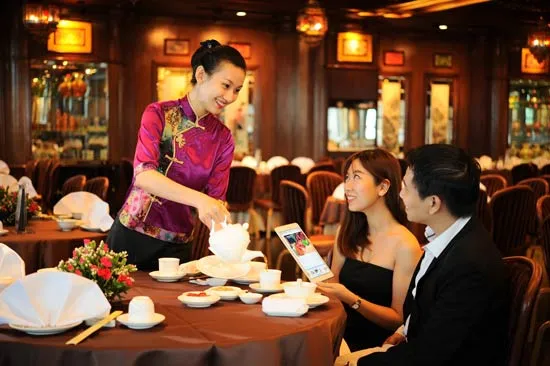 Trong khi đó, nhà hàng Ngân Đình tại lầu 5 lại là nơi giúp thực khách trải nghiệm mỹ vị Trung Hoa tinh tế. Toàn bộ thực đơn của nhà hàng đều được thể hiện trên những chiếc máy tính bảng Samsung Galaxy Tab màn hình 9,7inch, có hình ảnh minh họa sống động cho từng món ăn. Kết hợp với sự tư vấn tận tình và chi tiết của nhân viên sẽ giúp thực khách dễ dàng lựa chọn hơn... Nhà hàng Ngân Đình giới thiệu các set menu và thực đơn chọn món đặc sắc với giá ưu đãi hấp dẫn. Thực đơn trưa dim sum ưu đãi cho 4 người giá chỉ 588.000++ với 9 món tuyển chọn. Cho những bữa tiệc gia đình sum họp, nhà hàng có thực đơn chọn sẵn cho 10 người, giá ưu đãi chỉ còn 3.388.000++ (giá gốc 4.888.000++), tặng kèm thức uống. Những ai say mê món vịt quay Bắc Kinh trứ danh tại Ngân Đình có thể chọn set đặc biệt bao gồm vịt quay 2 món, bồ quay câu hồng xíu và tôm sú hấp giá chỉ 1.100.000++/set hoặc chọn món riêng với giá ưu đãi 110.000++/món. Các chương trình ưu đãi phục vụ suốt tháng 10.