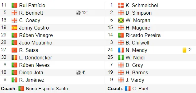 2-0 Phút 12, từ quả phạt góc của Joao Mourinho, trung vệ Ryan Bennett bật lên đành đầu vào góc lưới khiến thủ thành Schmeichel bó tay.