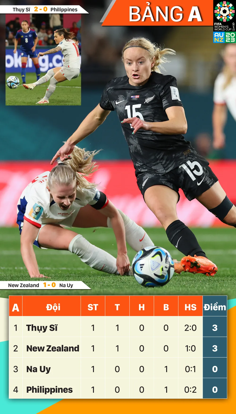 World Cup nữ 2023: Kết quả và xếp hạng bảng A