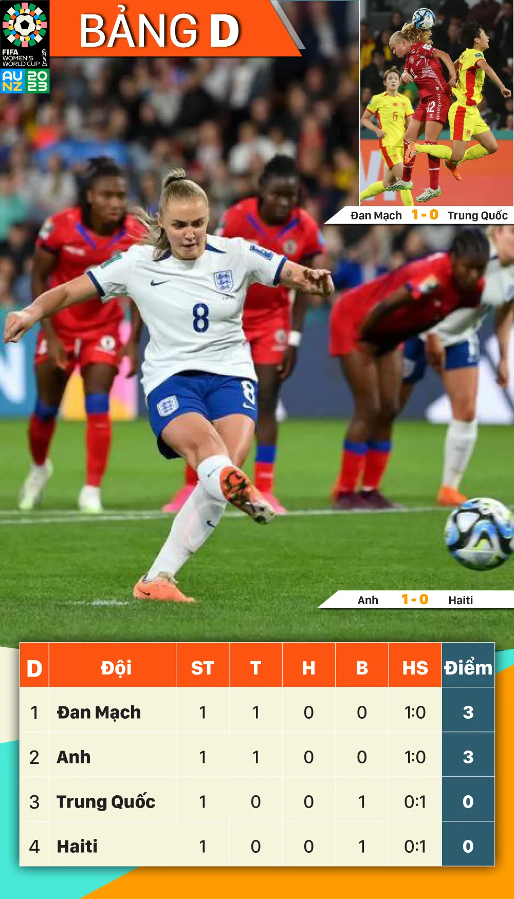 World Cup nữ 2023: Kết quả và xếp hạng bảng D