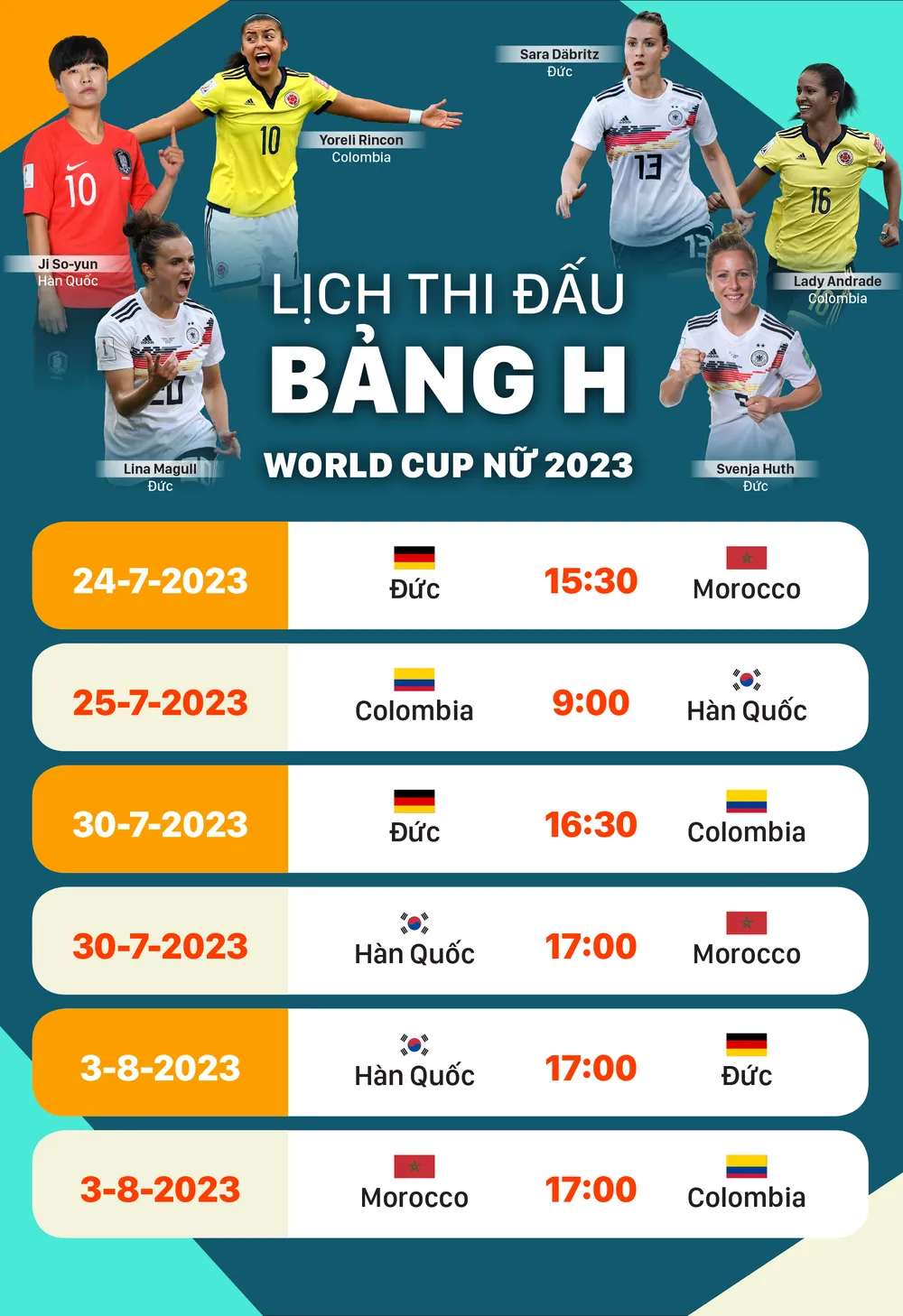 Khi những ứng viên sáng giá đều đã tề tựu về ngày hội lớn, nhà đương kim vô địch Mỹ vẫn ngóng chờ đối thủ đáng ngại nhất của họ, tuyển Đức (hạng 2 thế giới) với 2 lần đăng quang trong quá khứ. Hai gã khổng lồ Đức và Mỹ sẽ cố gắng né nhau trên đường vào chung kết. Hãy dõi theo bước chân của tuyển Đức trong bảng H với Hàn Quốc, Colombia, Morocco.