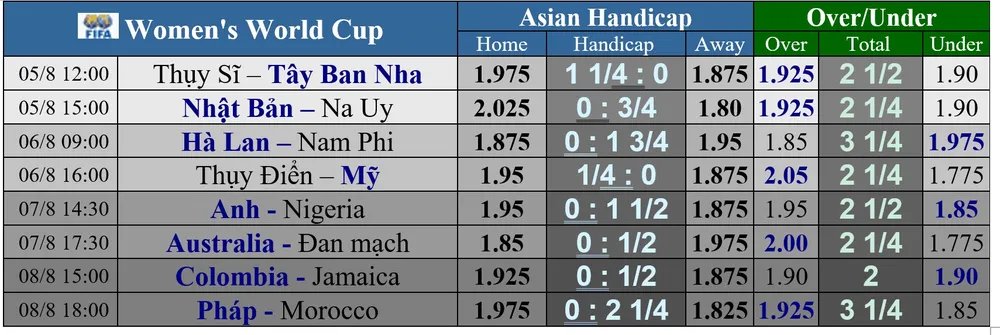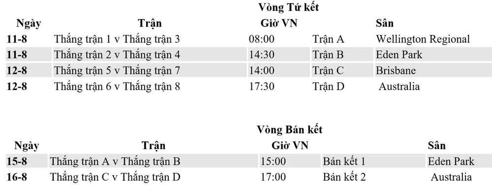 World Cup nữ 2023: Lịch thi đấu vòng 16 đội