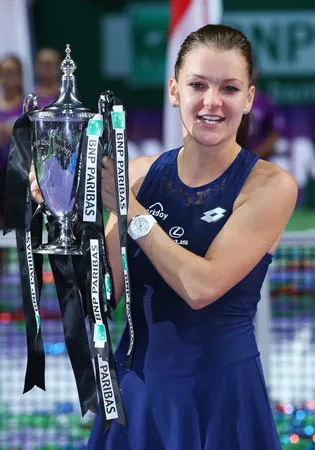 Agnieszka Radwanska hạnh phúc nâng cúp vô địch.