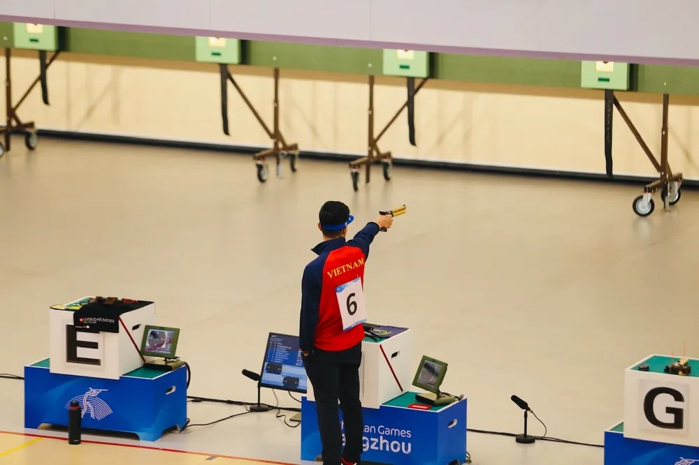 Năm 2018 tại ASIAD 18 ở Palembang (Indonesia), thể thao Việt Nam phải chờ 5 ngày kể từ khi khai mạc mới có được tấm HCV đầu tiên (thành tích lúc đó là đội thuyền rowing nữ). Kì ASIAD 19 này, chúng ta cũng chờ 5 ngày kể từ khai mạc (ngày 23-9) mới có HCV đầu tiên môn bắn súng của Phạm Quang Huy. Xạ thủ này cho biết đây mới là lần đầu tiên mình được dự một chung kết cá nhân ở giải đấu lớn quốc tế trong cấp độ Đại hội.