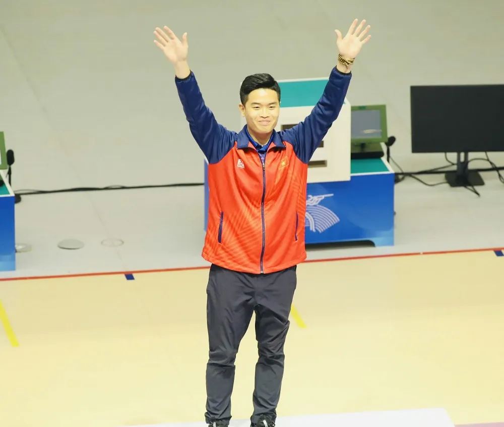 Xạ thủ Phạm Quang Huy đã có cột mốc lịch sử cho bản thân mình và bắn súng Việt Nam tại ASIAD 19. Ảnh: ĐOÀNTTVN