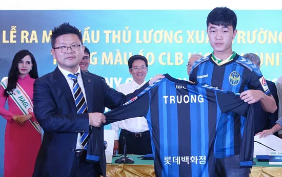 Hôm qua 28-12, Chủ tịch CLB HA.GL Đoàn Nguyên Đức ký hợp đồng chuyển nhượng tiền vệ Lương Xuân Trường cho CLB Incheon United, đang thi đấu ở giải nhà nghề Hàn Quốc (K-League Classic).