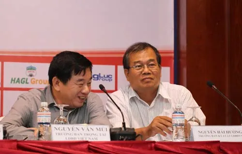 Trưởng ban Kỷ luật Nguyễn Hải Hường cùng Trưởng ban Trọng tài Nguyễn Văn Mùi (trái). Ảnh: Nhật Anh