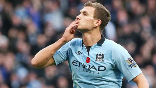 Dzeko đeo hoa anh túc trước ngực để tưởng niệm người ngã xuống trong Thế chiến I và II.